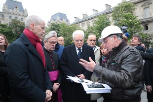 Il presidente della Repubblica Sergio Mattarella, che si trova in visita in Francia per le celebrazioni del 500 esimo anniversario della morte di Leonardo da Vinci, è andato a Notre-Dame per una visita alla cattedrale devastata dall'incendio del 15 aprile scorso.