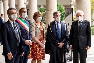 Ad accogliere il capo dello Stato, il rettore della Statale Elio Franzini, il ministro dell'Università e della ricerca Cristina Messa, il presidente della Regione Lombardia Attilio Fontana e il sindaco di Milano Giuseppe Sala. All'inaugurazione presente anche il ministro per le Pari opportunità Elena Bonetti.