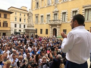 Il ministro dell'Interno parla a Siena, durante un comizio: attacca il presidente francese, "l'Italia non è più in vendita", dice "ora Merkel chiama". E poi chiede a Malta di aprire i porti, ma il governo replica: "Solo retorica, nessuna richiesta ufficiale"