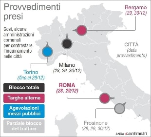 A Milano blocco del traffico dal 28 al 30 dicembre E' confermato il blocco del traffico da oggi al 30 dicembre dalle ore 10 alle 16. L'Arpa segnala che, nel capoluogo lombardo, le concentrazioni di PM10 hanno superato i limiti consentiti per 31 giorni consecutivi. Con la giornata di Natale i limiti sono stati superati dall'inizio dell'anno a Milano per 96 giorni, quando il limite previsto dalle norme è di di non più di 35 giorni in un anno.