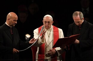 "Vergogna per i naufragi, per il sangue innocente delle donne e dei bambini, degli immigrati per quanti sono discriminati per il colore della pelle e l'appartenenza etnica". Sono queste le parole con cui Papa Francesco ha concluso la Via Crucis al Colosseo. "Vergogna - ha aggiunto - per trutte le volte che noi vescovi e sacerdoti abbiamo ferito il tuo corpo, la Chiesa, lasciando arrugginire il nostro cuore. Per le troppe volte che ti abbiamo venduto e tradito scappando come codardi, per le nostre mani pigre nel dare e avide nel prendere, per i nostri piedi veloci nell'allontanarci e lenti nell'avvicinarci". "O Cristo straziato nelle carni, incoronato di spine, schiaffagggiato e atrocemente inchiodato tu che sei il Dio della vita", ha invocato Francesco. "Il nostro cuore - ha continuato - e' nostalgioso. I nostri tradimenti non fanno venire meno la speranza sicura che i nostri nomi siano incisi nel tuio cuore. La speranza che la tua fedelta' non si basa sulla nostra, che la tua Chiesa cerchera' di essere la voce che grida nel deserto, che il bene vincerà nonostante la sua apparente sconfitta. Dinnanzi al tuo patibolo ci inginocchiamo invergognato e speranzosi, ti chiediamo di perdonare i nostri peccati, di accogliere i nostri fratelli stroncati da violenza indifferenza o guerra, di spezzare le catene della vanità dei nostri calcoli mondani".