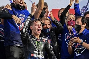 Una gara intensa che vedeva la Ducati di Pecco Bagnaia guidare la gara, e avvicinare in classifica proprio Quartararo prima di uscire in curva, cadere e ritirarsi, regalando al transalpino il titolo.