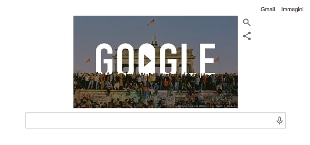 La scritta 'Google' fa da sfondo a un'immagine che ritrae le persone in piedi sul Muro quel fatidico 9 novembre 1989. Cliccando sul doodle appare un video con alcune foto della caduta, seguite da quelle di parti del Muro sparse per il mondo