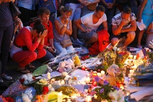 Sulle transenne che chiudono temporaneamente gli oltre due chilometri di passeggiata sono appesi fiori, fogli con pensieri scritti, in tante lingue diverse (francese, arabo o italiano), moltissimi orsetti in ricordo dei tanti bambini rimasti vittima della corsa del tir.