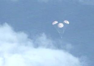 La capsula è rientrata 4 ore e 24 minuti dopo il lancio. Degli addetti recupereranno la navicella ammarata nell'Oceano Pacifico
