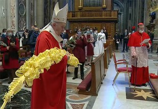 Si è conclusa, nella Basilica di San Pietro, la messa per la Domenica delle Palme che apre la Settimana Santa. Papa Francesco ha celebrato all'Altare della Cattedra, concelebranti monsignor Stefanetti e monsignor Boiardi. Una trentina i cardinali. Circa un centinaio i fedeli presenti. Su ogni panca dei ramoscelli di ulivo.