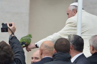 Papa Francesco fa amicizia con un pappagallo