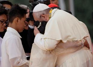 Papa Francesco ha incontrato i giovani nell'Università di Santo Tomas a Manila ed è rimasto colpito dalla testimonianza di due ragazze vissute per strada finché non sono state salvate dall'associazione Tkf. La loro domanda "Perché Dio permette tutto questo?" ha commosso il pontefice