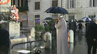 Papa Francesco ha fatto il tradizionale omaggio all’Immacolata Concezione, in piazza di Spagna, nel giorno dell’8 dicembre, ma in forma privata e di mattina presto, come riporta Aci stampa, sotto la pioggia, per rispettare le norme imposte per contenere la pandemia. "Con la mascherina e l’ombrello aperto, circondato dai Vigili del Fuoco, Francesco ha sostato in preghiera prima di rientrare in Vaticano", scrive sempre Aci Stampa. La Statua dell’Immacolata venne fatta erigere dal Beato Pio IX.