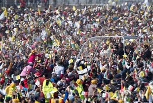 Durante la visita di papa Francesco a Ecatepec, città-satellite della capitale messicana, "circa 300 mila erano le persone che hanno assistito alla messa nell'area del Centro Studi, mentre altre centinaia di migliaia di persone lo hanno salutato al suo passaggio in 'papamobile' lungo la strada, per un totale di quasi un milione di persone". Lo ha affermato il direttore della sala stampa vaticana, padre Federico Lombardi, in un briefing con la stampa. Nel dirigersi in elicottero a Ecatepec, ha riferito Lombardi, il Papa ha anche sorvolato la piramide precolombiana di Teotihuacan, uno dei siti archeologici più importanti del Messico e di tutto il Centro-America. Il portavoce vaticano ha anche spiegato che, nella conversazione in serata in Nunziatura con un gruppo di gesuiti, è stato chiesto al Papa quale sia il principale sentimento che prova in questa sua visita in Messico. "Tutta questa gente, questa moltitudine nelle strade, con questa speranza di vedermi, di salutarmi con tanto amore - ha risposto Francesco - mi dà il senso della gratuità: viene per un amore gratuito, per un sentimento di vicinanza e amore per il Papa, totalmente gratuito".