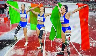 L'Italia trionfa nei 100 metri piani alle Paralimpiadi di Tokyo 2020. Oro per Ambra Sabatini, come Marcell Jacobs che aveva trionfato a sorpresa ai Giochi olimpici e che oggi celebra le tre atlete sul suo profilo Instagram: "Grazie per avermi fatto emozionare".