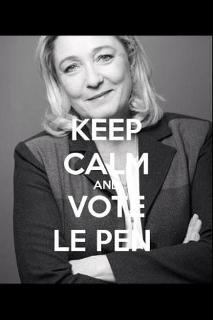 "State calmi e votate Le Pen". Jean-Marie Le Pen, padre fondatore ed ex patron del Front National, il partito di estrema destra francese, pubblica su Twitter una foto della figlia, attuale segretaria del FN, con l'invito a votarla.