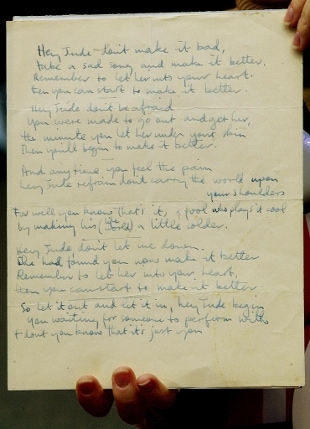 Per il manoscritto di "Hey Jude" dei Beatles 910mila dollari in un'asta