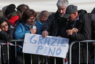 "Mi raccomando, state uniti. E' il più bel regalo che potete fare a Pino, altrimenti avrà fallito come padre e come uomo": è uno dei passaggi dell'omelia di padre Renzo Campetella, durante il funerale. Dura la predica, con una reprimenda anche a giornalisti e artisti e "cosiddetti vip". Il funerale di Daniele in programma in serata a Napoli sarà celebrato dal cardinale Crescenzio Sepe. Lo ha reso noto la Curia arcivescovile di Napoli. La cerimonia funebre di Napoli si svolgerà in piazza del Plebiscito e non, come inizialmente previsto, nella Basilica di San Francesco Di Paola. Lo ha deciso il Comune di Napoli, di comune accordo con la famiglia del cantautore scomparso.