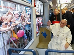 Il Papa sul tram ecologico per andare al Parco di Blonie