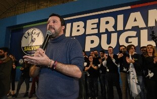 "Venerdì pomeriggio, alle 15, Conte dice che la banche Italiane sono sicure e la Popolare di Bari non rischia alcunché. Cinque ore dopo la Banca d'Italia commissaria la Banca Popolare di Bari. Ditemi se possiamo avere un presidente del Consiglio che è un ignorante o un bugiardo, oppure tutte e due", ha detto stasera a Bari Matteo Salvini. Su PopBari, ha aggiunto, "qualcuno doveva vigilare, non è possibile che gli italiani paghino persone che devono vigilare dei conti e poi dalla mattina alla sera si scopre che le cose non vanno. Mi auguro che il Parlamento approvi la proposta della Lega sulla Banca d'Italia. I controllori siano espressi dal popolo italiano" ha aggiunto Salvini.