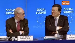 Il presidente del Consiglio Ue e il presidente della Commissione José Manuel Barroso si sono scambiati un sorriso dopo una domanda su Matteo Renzi. Ma il portavoce di Van Rompuy spiega: "È stato un deliberato errore di interpretazione"