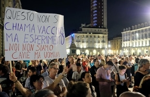 A Torino maxiprotesta ieri sera contro Green Pass e vaccini al grido di "libertà".