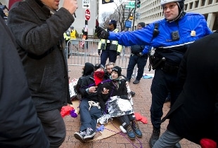 I manifestanti violenti sono poi stati dispersi dalla polizia mentre tentavano di avvicinarsi al National Mall, dove si trovavano gli spettatori della cerimonia del giuramento. Vestiti come black block e con le bandiere rosse e nere dell'anarchia, i giovani che inscenavano la protesta sono stati allontanati dai poliziotti anche con l'uso di gas urticanti.