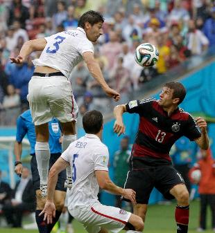 Match vivo,con repentini cambi di campo ma emozioni col contagocce. Serviti da Schweinsteiger, Mertesacker e Muller si ostacolano a vicenda davanti alla porta al momento di tirare (10'). Risposta americana con Zusi: gran botta dalla distanza, palla appena alta. Ci prova Ozil: sinistro secco, Howard respinge. Ripresa. Al 55' Germania avanti con Thomas Muller (4° gol mondiale, agganciati in testa alla classifica marcatori Neymar e Messi), che trova di destro il corridoio giusto dopo una ribattuta di Howard su capocciata di Mertesacker. Usa storditi dallo svantaggio, l'unico sussulto arriva in pieno recupero (93') con la doppia occasione di Bedoya (conclusione murata da Lahm) e Dempsey (colpo di testa fuori di pochissimo). Alla fine, è comunque festa per due.