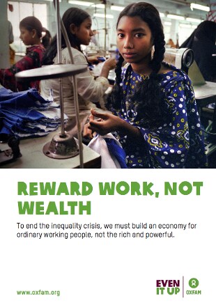 Le disuguaglianze sono ben percepite: in un sondaggio che ha visto coinvolte 70 mila persone in 10 paesi di 5 continenti, Oxfam ha rilevato che oltre il 75% ritiene che il gap tra ricchi e poveri nel proprio Paese sia eccessivo. Oxfam chiede quindi alle istituzioni nazionali di porsi come obiettivo che entro il 2030 il reddito complessivo del 10% piu' ricco non sia superiore al reddito del 40% piu' povero e che per far questo bisogna agire su numerosi fronti, dal garantire dei salari dignitosi all'incremento della spesa per i servizi essenziali passando ovviamente ad una maggiore equita' e progressivita' delle politiche fiscali nazionali.