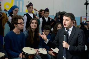 La giornata del premier era cominciata con la visita all’istituto Raiti, intitolato a un giovane carabiniere siracusano ucciso dalla mafia. “Che la scuola italiana torni ad essere la patria della bellezza e della cultura”: questo lo slogan con cui i ragazzi hanno accolto il presidente del Consiglio. Il premier ha detto che volentieri avrebbe portato lo stesso slogan a palazzo Chigi. Renzi, parlando con i ragazzi, gli insegnati e le altre componenti della scuola ha sottolineato il difficile momento del mercato del lavoro: “"E' il momento più difficile da 30 anni per chi perde il posto di lavoro. Dobbiamo cercare di fare uno sforzo vero". E, facendo riferimento agli insegnanti, ha detto dobbiamo dire “grazie alle insegnanti, il loro è un lavoro importante, un lavoro che salva Paese”. Renzi ha poi citato Martin Luther King, chiedendo ai ragazzi se sapessero chi fosse e spiegando che “senza scuola non si possono inseguire i propri sogni”, ed ha ricordato la vittoria italiana all’Oscar spiegando che “la grande bellezza è dentro ognuno di noi”. "La scuola è luogo di sogni - ha spiegato il premier -. Noi con Graziano Delrio, che è qui con me, e con i ministri, faremo di tutto per fare delle scuole il luogo della grande bellezza". Parlando delle nuove tecnologie e dei social network il premier ha poi detto: "Qualsiasi messaggio virtuale non vale la bellezza di un abbraccio fisico. Io uso twitter, facebook, ho quasi un milione di amici, ma che senso ha chiedere l’amicizia a uno che sta a 100 chilometri se non si chiede poi al compagno di banco?". Il premier ha poi parlato della diversità e ha esortato i bambini: "Accettarsi nelle diversità è qualcosa di bello".