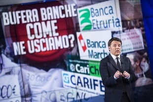 "Sulle banche, la questione è molto ampia. In sintesi estrema: l'Italia del passato avrebbe dovuto cambiare il sistema del credito. Ridurre poltrone e istituti, rendendoli più solidi e meno rischiosi. Non è stato fatto. Da quando ci siamo noi andiamo in questa direzione, partendo con la riforma delle Popolari". Per il futuro delle banche il premier immagina un accorpamento degli istituti di credito."Ci sono troppi Cda, troppi direttori generali e troppi consulenti. Le banche vanno accorpate e lo faremo a partire dalle banche di credito cooperativo. È arrivato il momento di dire che ci sono stati troppi che hanno giocato a fare i piccoli banchieri. Io vorrei che ci fosse un gruppo bancario delle Bcc".