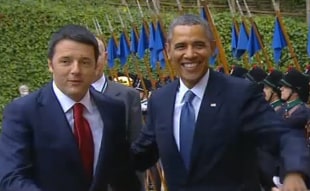 Una stretta di mano dopo aver passato in rassegna il picchietto d'onore dei Lancieri di Montebello, Renzi e Obama hanno poi raggiunto l’interno della sede di rappresentanza del ministero degli Esteri per un colloquio – accanto a loro il segretario di stato John Kerry ed il ministro degli Esteri Federica Mogherini - al termine del quale terranno una conferenza stampa congiunta.