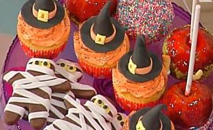 I biscotti a forma di mummia, i cupcake 'da paura' decorati con i cappellini da strega e le classiche mele caramellate rivisitate. Sono tre leccornie che si possono realizzare facilmente per la festa di Halloween, durante la quale i dolci hanno un ruolo molto importante. Seguendo le ricette si possono così soddisfare i bimbi che bussano alla porta recitando "dolcetto o scherzetto".