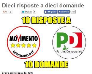 Il blog di Beppe Grillo pubblica la replica del M5S alle domande del Partito democratico, registrando un'apertura sul superamento del bicameralismo