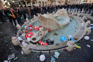 "Abbiamo ripulito interamente piazza di Spagna e per fortuna i danni alla Barcaccia non sono gravissimi, ma l'offesa alla città rimane", ha detto il sindaco di Roma, Ignazio Marino. "Abbiamo accompagnato - ha detto ancora Marino - a scaglioni con degli autobus i tifosi, ma io li chiamerei più barbari, alla stazione Termini e all'aeroporto".