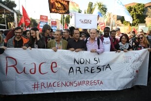 "Oggi mi sento uno di voi. Una folla immensa che chiede umanità. E' giusto essere qui oggi. Sono sicuro che esiste un'umanità differente dal clima di barbarie e disumanità che oggi c'è in Italia" ha detto il sindaco di Riace in piazza San Giovanni, dov'è terminato il corteo. Lucano ha quindi ricordato di "non poter tornare a casa: vivo una libertà condizionata" ha detto. Di certo però "rifarei tutto mille volte per la causa dei rifugiati che sono i nuovi poveri, i proletari. Bisognerebbe cacciare la parola clandestino dal vocabolario".
