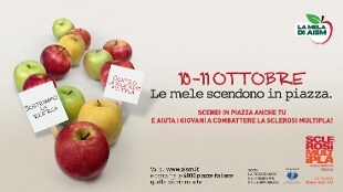 Per sostenere la ricerca, ma anche le condizioni di vita di chi è colpito da questa malattia, sabato 11 e domenica 12 ottobre torna in 4000 piazze italiane “LA MELA DI AISM”: un piccolo contributo, in cambio mele, sperando di togliere la sclerosi multipla di torno.