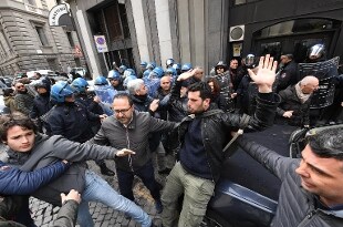 Poco distante dalla sede del quotidiano ci sono stati scontri tra le forze dell'ordine ed i manifestanti. Momenti di tensione anche dall'altra parte della strada, in via Chiatamone. Le manifestanti hanno provato a forzare il cordone di sicurezza, ma sono state fermate
