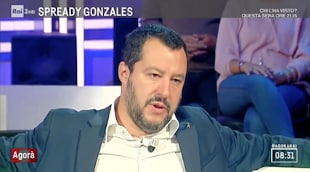 "La manovra non cambia, ho assunto un impegno solo in questo studio decine di volte per cambiare la Fornero e adesso perché qualcuno a Bruxelles, lo spread o Bankitalia mi dice che non va bene dico agli italiani 'ho scherzato?'. Io la manovra non la cambio, io vado dritto". Così il vicepremier Matteo Salvini ospite di Agorà su Raitre.