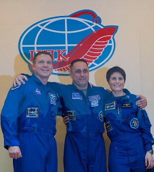 La Soyuz con la quale partirà è già posizionata sulla rampa di lancio numero 31 del cosmodromo, la stessa dalla quale partì la prima donna nello spazio, Valentina Tereshkova. Insieme a Samantha Cristoforetti nella navicella si siederanno anche il russo Anton Shkaplerov e l'americano Terry Virts, due veterani che hanno già all’attivo una missione in orbita. Dopo la partenza impiegheranno sei ore per raggiungere la ISS a 400 chilometri di altezza. L’aggancio è previsto intorno alle 4 del mattino, ora italiana.