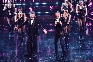 Omaggio a Ennio Morricone sul palco dell'Ariston da parte prima del trombettista Nello Salza con il tema di 'Il buono, il brutto e il cattivo, poi del figlio Andrea Morricone che dirige l'orchestra sulle note di 'Metti una sera a cena' e infine di Il Volo che canta 'Your Love'. Commozione non solo per il ricordo, ma anche per Ignazio Boschetto, uno dei componenti del gruppo vocale, sul palco nonostante abbia perso il padre domenica. "Sono contento che siate qua anche in un momento moto difficile, nella serata dedicata alla musica italiana nel mondo", dice Amadeus.