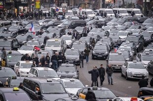 Migliaia di tassisti in tutta la Francia protestano contro le "derive" dei loro concorrenti del settore noleggio con guidatori