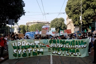 Centinaia di persone si sono radunate questa mattina in piazza Cairoli a Milano in vista della Youth ForClimate e la Pre-Cop 26, i due grandi eventi internazionali che, per cinque giorni, trasformeranno la città nella capitale mondiale del dibattito sul clima. Ad aprire il corteo un grande striscione verde con la scritta “uproot the sistem” (sradichiamo il sistema). “Oggi è sciopero globale, in tutto il mondo ed è la prima manifestazione dopo quasi due anni di pandemia. È una giornata importantissima. - dice uno degli organizzatori -. Stiamo vedendo il nostro ecosistema distruggersi, disastri ambientali. Ci stanno togliendo il futuro e la dignità, ma siamo tornati. Vogliamo fatti e azioni concrete. La crisi ecologica e ambientale non può essere risolta senza un cambio radicale”. Il corteo dopo aver attraversato la città si concluderà alla biblioteca degli alberi in zona Gae Aulenti.