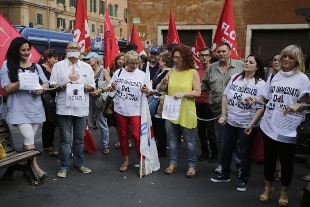 Per contestare il disegno di legge sulla 'Buona scuola', alcuni esponenti delle organizzazione sindacali di Roma e del Lazio e l'Uds, Unione degli studenti, hanno effettuato alcuni blitz all'alba di oggi al Miur e in altri luoghi simbolo della capitale come il Colosseo, Ponte Garibaldi, Ponte Milvio, Piramide e San Pietro in Vincoli con l'obiettivo, si legge in una nota, "di avviare una nuova fase di lotte in difesa della scuola pubblica nel giorno dell'imposizione del voto di fiducia al Senato". "Il Governo Renzi vuole imporre con un atto di forza - è chiarito nella nota - un provvedimento che non ha mai tenuto conto dei bisogni e delle voci del Paese reale. Il risultato F una riforma che rischia di accrescere le diseguaglianze gia presenti all'interno del sistema nazionale di istruzione, fondata su un modello autocratico e clientelare. Una scuola che insegue la competizione invece di perseguire la cooperazione garantendo eguali opportunita per tutti". Secondo studenti e sindacati è necessario ripartire da sette priorita: "un nuovo diritto allo studio per raggiungere la piena gratuita dell'istruzione; un'alternanza scuola-lavoro finanziata e qualificata; finanziamenti per il rilancio della scuola pubblica; una riforma della valutazione in chiave democratica; investimenti sostanziosi sull'edilizia scolastica; un ripensamento radicale dell'autonomia scolastica; una riforma dei cicli scolastici, dei programmi e della didattica".