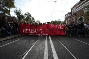 Corteo di studenti anche a Torino. I manifestanti, circa 150 giovani molti dei quali vicini all'area antagonista torinese, hanno sfilato per le vie del centro. La protesta, che si è svolta in modo pacifico, ha causato disagi alla viabilità. Lungo il percorso gli studenti hanno acceso diversi fumogeni e affisso manifesti contro il premier, Matteo Renzi, sulle vetrine di una libreria.