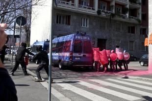 La manifestazione a Milano è arrivata fino a piazza Einaudi angolo Melchiorre Gioia, a un centinaio di metri dal complesso di Palazzo Lombardia, sede della Regione. Gli studenti hanno disegnato con la vernice in mezzo alla strada una lunga striscia rossa reggendo alle spalle uno striscione con la scritta "La zona rossa che piace a noi, liberi e ribelli".