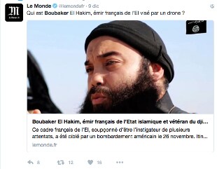 Si tratta di uno dei leader più importanti dell'Isis. Boubaker era il mentore dei fratelli Said e Sherif Kouachi, che fecero strage di giornalisti e disegnatori di Charlie Hebdo, e avrebbe avuto un ruolo anche nell' organizzazione della strage di Parigi del 13 novembre 2015 in cui un commando di Isis massacro oltre 130 persone. Nato a Parigi nel 1983 da una numerosa famiglia tunisina, Al Hakim aveva doppio passaporto. Nel 2003 dopo l'invasione dell'Iraq aveva creato una rete di jihadisti al comando del leader di al Qaida in Iraq Al Zarqawi. Poi era passato Siria, dove era stato arrestato ed estradato in Francia. Qui era stato condannato nel 2008 a sette anni di prigione. All'epoca era considerato tra i più radicalizzati della rete di giovani estremisti dell'area parigina, inclusi i due fratelli Said e Cherif Kouachi. Rilasciato di prigione nel 2011, si sarebbe spostato in Tunisia, apparendo nel video di rivendicazione degli omicidi dei deputati dell'opposizione locale Chokri Belaid e Mohamed Brahimi. Da allora il suo ruolo tra i ranghi dell'Isis crebbe e si ritiene che abbia giocato un ruolo nelle operazioni all'estero del gruppo, iniziando a reclutare per l'Isis. Finora, ha ricordato Obama nel suo recente intervento a Tampa, Florida, sarebbero 120 i vertici del Califfato uccisi.
