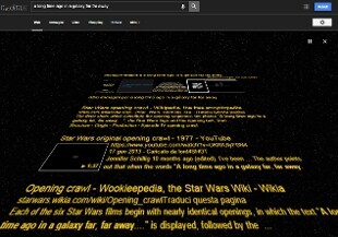 I risultati forniti da Google scorrono infatti con lo stesso formato grafico dell'inizio di tutti i capitoli di Star Wars, cioè in giallo su uno sfondo stellato. I link rimangono cliccabili e perfettamente funzionanti, anche in questo formato assolutamente inedito. Una vera e propria pagina di ricerca da collezione.