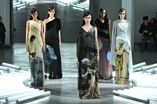Luke Skywalker, Yoda, R2-D2, C-3PO, la Morte Nera e i due soli del Pianeta Tatooine sfilano sui vestiti proposti dalle sorelle Kate e Laura Mulleavy, stiliste del marchio Rodarte. L'ispirazione è bohémienne, le modelle eteree, la collezione decisamente stravagante.