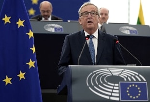 Discorso sullo Stato dell'Unione del Presidente della Commissione Europea. "L'Europa sta attraversando una crisi esistenziale, è arrivato il momento che tutti noi ci assumiamo le nostre responsabilità. Non dobbiamo renderci colpevoli di errori che porranno fine al sogno europeo", ha detto juncker che ha annunciato da novembre la registrazione di chi entrerà nell'Unione