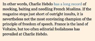 A real excerpt from a real article published by the Financial Times in reaction to #CharlieHebdo attacks. Appalling. pic.twitter.com/GK4HrHhm5G