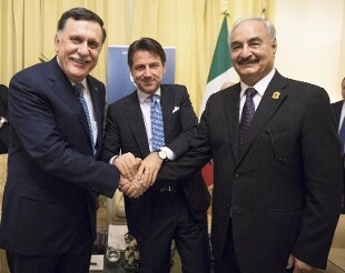 Il generale libico Khalifa Haftar e il premier del governo di unità nazionale Fayez al Sarraj si sono dunque stretti la mano. Fonti riferiscono che così Haftar ha dato appoggio alla presidenza di Serraj, ma non prima di nuove elezioni che saranno programmate. Poi il leader della Cirenaica è ripartito per Bengasi, senza nemmeno affacciarsi alla conferenza plenaria. La mia presenza è limitata agli incontri con i ministri dell'Europa e poi riparto immediatamente", aveva sottolineato Haftar.