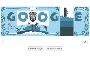 Nel Doodle appaiono un’imbarcazione stilizzata che naviga sull’oceano e un moai, una delle statue tipiche dell’Isola di Pasqua. Cliccando sul logo, si viene rimandati alla pagina del motore di ricerca con i link dedicati a Thor Heyerdahl. Il norvegese divenne famoso per le sue teorie sulla colonizzazione umana del pianeta, che contrastavano con alcune di quelle più diffuse. Per dimostrare che erano possibili, non esitò a viaggiare in prima persona mettendosi nelle condizioni delle popolazioni che vivevano centinaia o migliaia di anni fa.