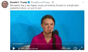 Trump fa ironia su Greta: "Sembra una ragazza molto felice!" E twitta il discorso dell'attivista